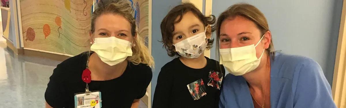 For Carlos, he had never been hospitalized before, so this was a very new environment for him, but he was quickly responsive to any opportunity to play. We spent a lot of time going to the playroom and playing at the bedside. I have so many memories of us playing superheroes in the hallway. Usually, Carlos would pretend to be Spiderman, and we would shoot pretend webs at each other. Carlos and I also often did medical play to familiarize him with the hospital environment and help him understand the equipment he saw daily being used to help his body.